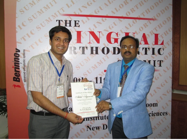 He is a certified Lingual Orthodontist. He received the “Best Clinical Excellence award” in “Lingual Residency Orthodontic Program” recognized by Indian Orthodontic Society. He received the “Best Paper Award” at ILOC, AIIMS, New Delhi. He is also extensively trained in Aligners therapy.